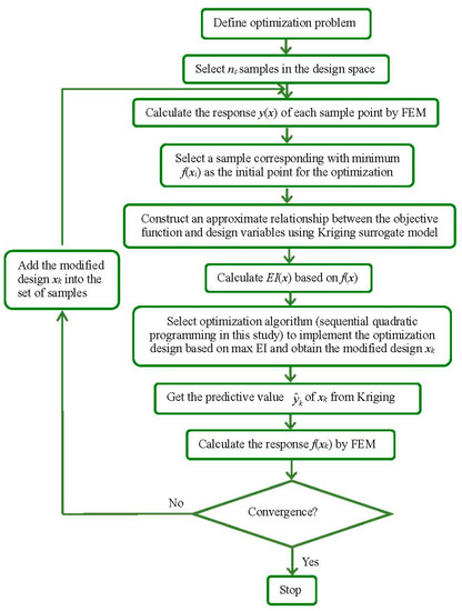 15] (Optimal LHS) was used to generate the initial training sample points. In the adaptive optimization process, the expected improvement (EI) function was adopted to balance local and global searches, as it tends to find the find the global optimal design, even with a small sample size. Finite element method (FEM) was used to simulate the stent expansion and stent injection molding. The numerical results and design optimization method of this work could potentially be useful in further optimization studies and development of biodegradable polymer stents, as well as development of the method of making a polymeric stent by means of the microinjection molding process.