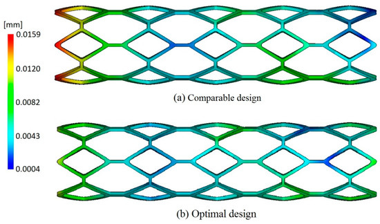Figure 9, from which it can be observed that the optimal design has smaller deformation than the comparable design.