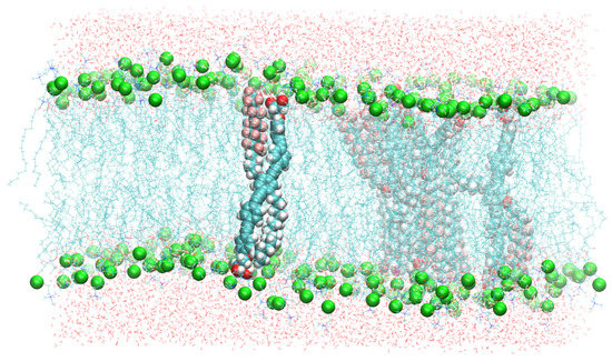 - Klauda, J.B.; Venable, R.M.; Freites, J.A.; O’Connor, J.W.; Tobias, D.J.; Mondragon-Ramirez, C.; Vorobyov, I.; MacKerell, A.D.; Pastor, R.W. Update of the CHARMM All-Atom Additive Force Field for Lipids: Validation on Six Lipid Types. J. Phys. Chem. B 2010, 114, 7830–7843. [Google Scholar] [CrossRef] [PubMed]