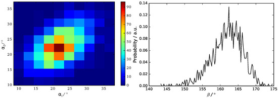 We use three angels , and to characterize the orientation of B16/10 backbone within the bilayer as shown in Figure 7. The distributions of the three angels are displayed in Figure 8.