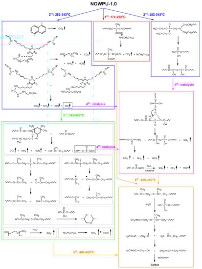 Thermal degradation mechanism mode of NOWPU-1.0 coatings.