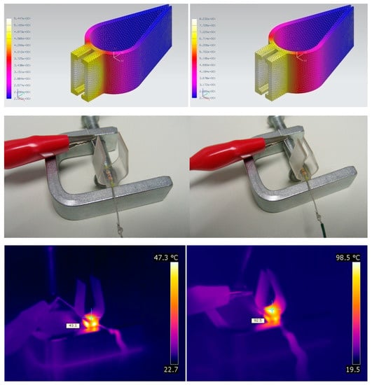 Validation of the activation system of a SMP surgical pincer: Design carried out with the help of thermal finite-element simulations and validation supported by IR-thermography for comparative purposes. See [10,21] for additional details regarding the use of FEM modeling and IR-thermography in the development of smart actuators based on shape-memory polymers.