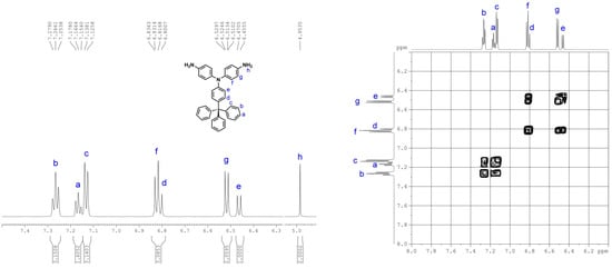 1H NMR spectra of 4,4′-diamino-4′′-trityltriphenylamine (3), measured in dimethyl sulfoxide (DMSO)-d6.