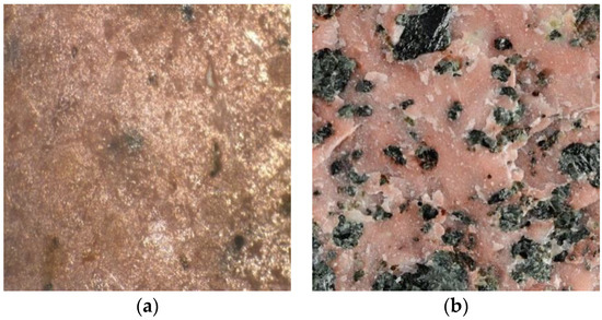 Surface Morphology (M × 35) of (a) Artificial Granite (60 wt % SSF/Poly (methyl methacrylate) (PMMA)/clay Halloysite nanotubules (HNTs)) compared to (b) natural Granite.