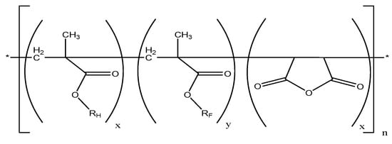 Structure of the target P[RHMA-co-RFMA-co-MAH]n terpolymers (x + y + z = 1, RH = C4H9–, C12H25–, RF– = C10H4F19–).