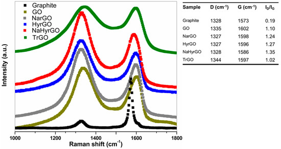 3.2. Analysis of Raman Spectra of Reduced GOs Synthesized by Different Methods