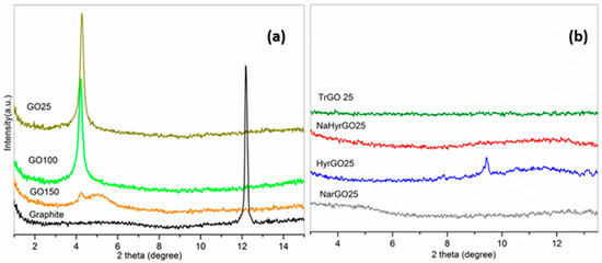 3.4. X-ray Diffraction Patterns of Graphite, GO and Various rGOs