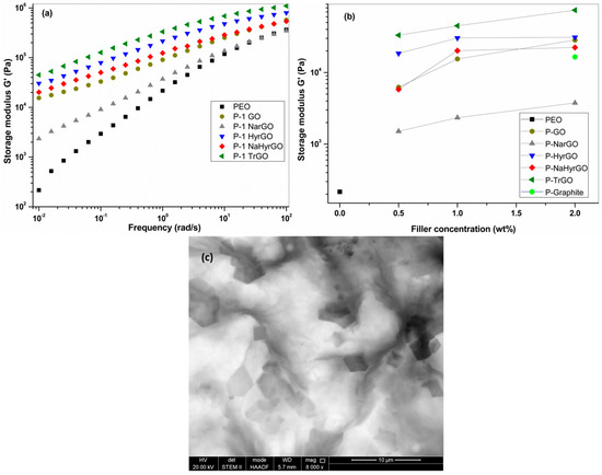 3.6. Effect of GO and Different Reduced GOs on the Linear Viscoelastic Behavior of PEO