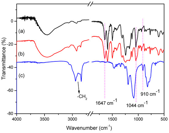 Fourier transform infrared (FT-IR) spectra of SPEKEBI (a), SPEKEBI/KH-560-5% (b) and KH-560 (c).