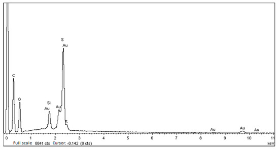The elemental distribution cross section (EDX) spectrum of cross-sectional morphology for SPEKEBI-2.5-SiO2 membrane.