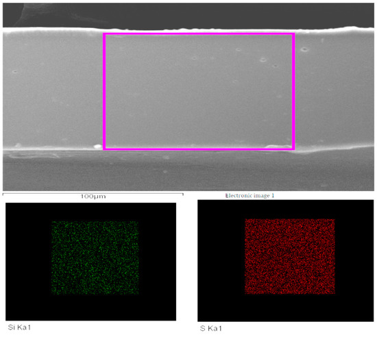 The scanning electron microscopy (SEM) image and EDX distribution maps of Si and S for the cross section of SPEKEBI-2.5-SiO2 membrane.