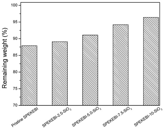 Weight residue of SPEKEBI andSPEKEBI-x-SiO2 membranes.