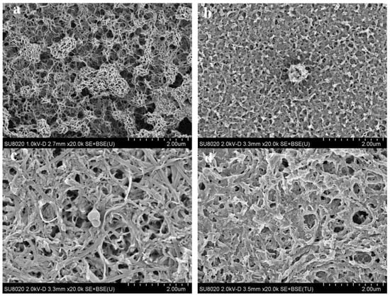 SEM images of P1 (a), P2 (b), P3 (c), and P4 (d) films deposited potentiostatically onto ITO electrodes.