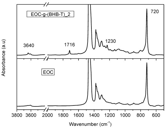 Comparison between the FT-IR spectra of EOC and EOC-g-(BHB-T)_2.