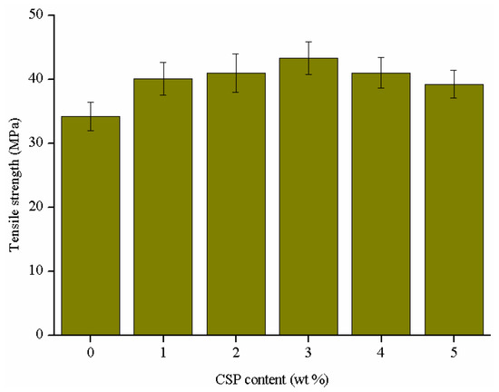 Tensile strength of the epoxy thermosets modified with different contents of CSPs.