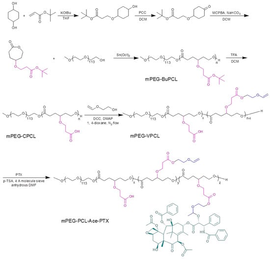 Synthesis of mPEG-PCL-Ace-PTX.