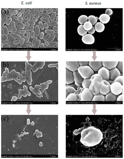 2.5. Bacterial Morphology Revealed by SEM