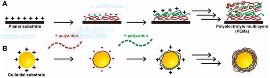 - Richardson, J.J.; Bjornmalm, M.; Caruso, F. Technology-driven layer-by-layer assembly of nanofilms. Science 2015, 348, 6233. [Google Scholar] [CrossRef] [PubMed]