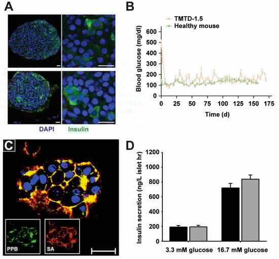 - Vegas, A.J.; Veiseh, O.; Gurtler, M.; Millman, J.R.; Pagliuca, F.W.; Bader, A.R.; Doloff, J.C.; Li, J.; Chen, M.; Olejnik, K.; et al. Long-term glycemic control using polymer-encapsulated human stem cell-derived beta cells in immune-competent mice. Nat. Med. 2016, 22, 306–311. [Google Scholar] [CrossRef] [PubMed]