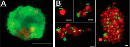 - Brandy, M.L.; Cayre, O.J.; Fakhrullin, R.F.; Velev, O.D.; Paunov, V.N. Directed assembly of yeast cells into living yeastosomes by microbubble templating. Soft Matter 2010, 6, 3494–3498. [Google Scholar] [CrossRef]