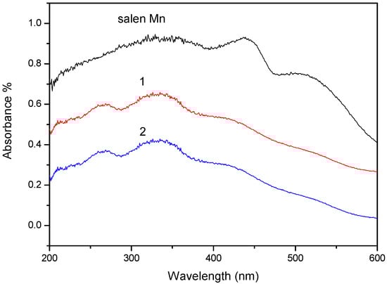 UV-vis spectra of catalyst 1 and 2 and chiral MnIII (Salen) (Jacobsen’s catalyst 4).