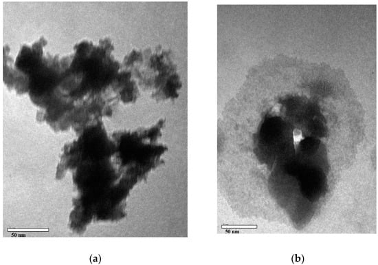 TEM photograph of (a) catalyst 1; (b) catalyst 1 (treated in basic solution).