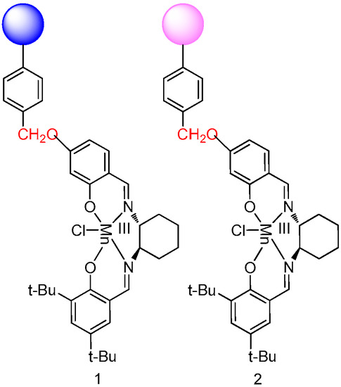 - Reger, T, S.; Janda, K.D. Polymer-supported (salen)Mn catalysts for asymmetric epoxidation: A comparison between soluble and insoluble matrices. J. Am. Chem. Soc. 2000, 31, 6929–6934. [Google Scholar] [CrossRef]