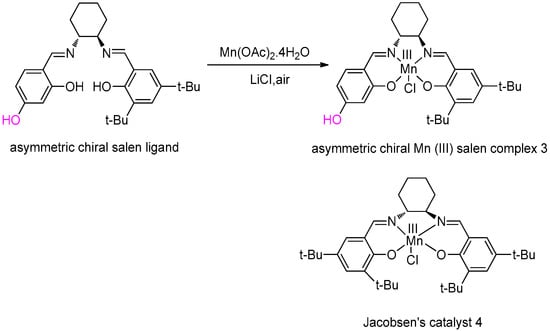 Illustration of asymmetric chiral MnIII (salen) complex 3 and Jacobsen’s catalyst 4.