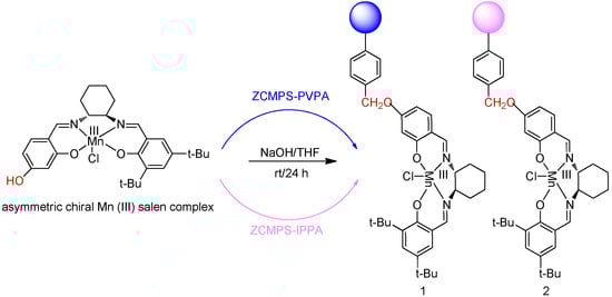 3.4. Immobilization Asymmetric Chiral MnIII (Salen) Complex 3 on the ZCMPS-PVPA and ZCMPS-IVPA