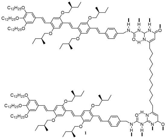Chemical structure of the bifunctional ureido-pyrimidinone appended with oligo(p-phenylenevinylene) chromophores (1) synthesized by Janssen and Meijer et al. [48].