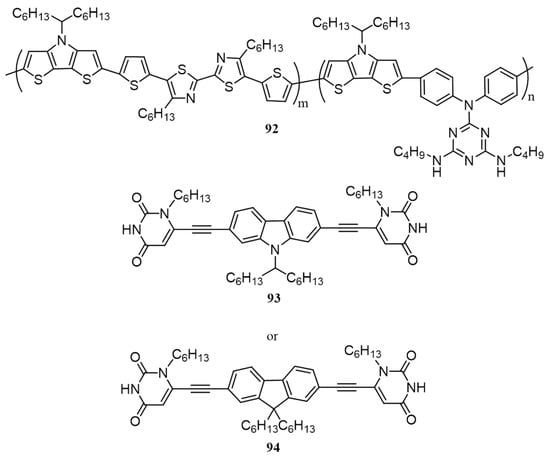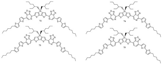 - Henson, Z.B.; Welch, G.C.; Poll, T.; Bazan, G.C. Pyridalthiadiazole-Based Narrow Band Gap Chromophores. J. Am. Chem. Soc. 2012, 134, 3766–3779. [Google Scholar] [CrossRef] [PubMed]