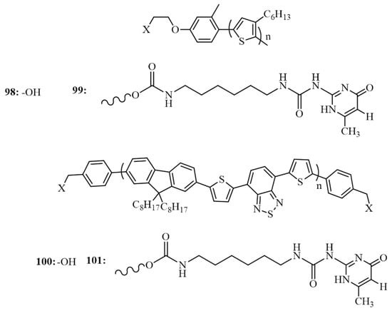 - El-ghayoury, A.; Schenning, A.P.H.J.; van Hal, P.A.; van Duren, J.K.J.; Janssen, Â.A.J.; Meijer, E.W. Supramolecular Hydrogen-Bonded Oligo(p-Phenylene Vinylene) Polymers. Angew. Chem. Int. Ed. 2001, 40, 3660–3663. [Google Scholar] [CrossRef]