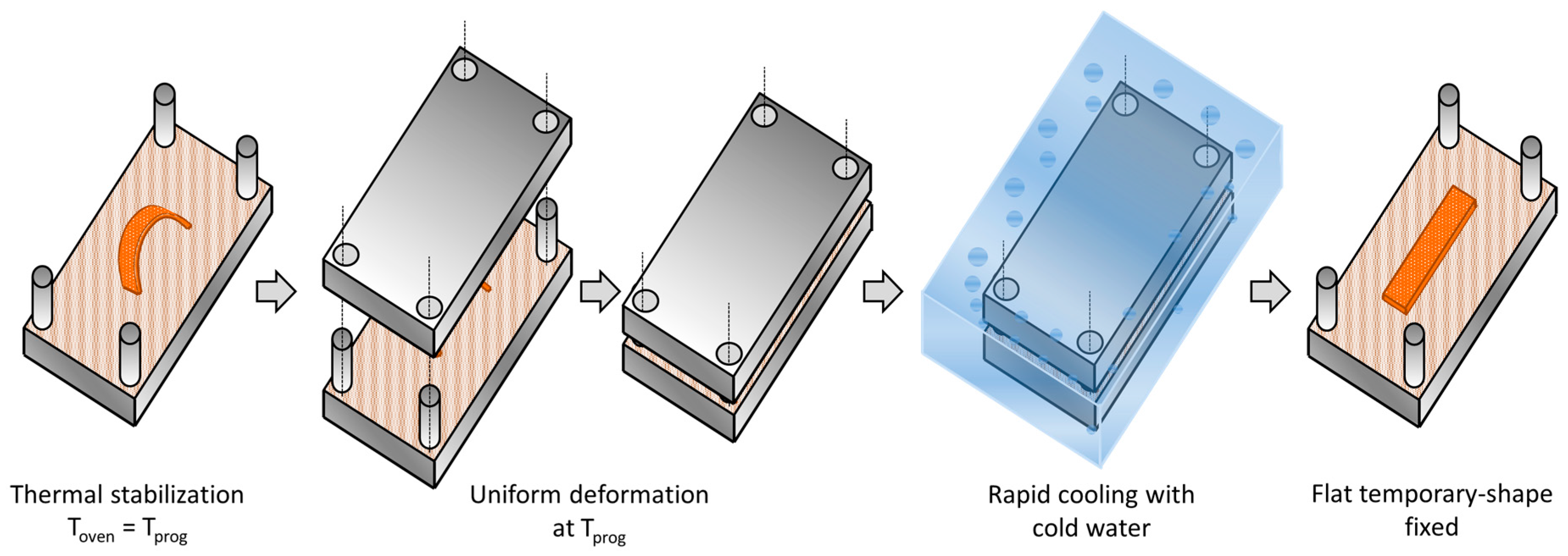 - Wu, X.; Huang, W.M.; Zhao, Y.; Ding, Z.; Tang, C.; Zhang, J. Mechanisms of the shape memory effect in polymeric materials. Polymers 2013, 5, 1169–1202. [Google Scholar] [CrossRef]