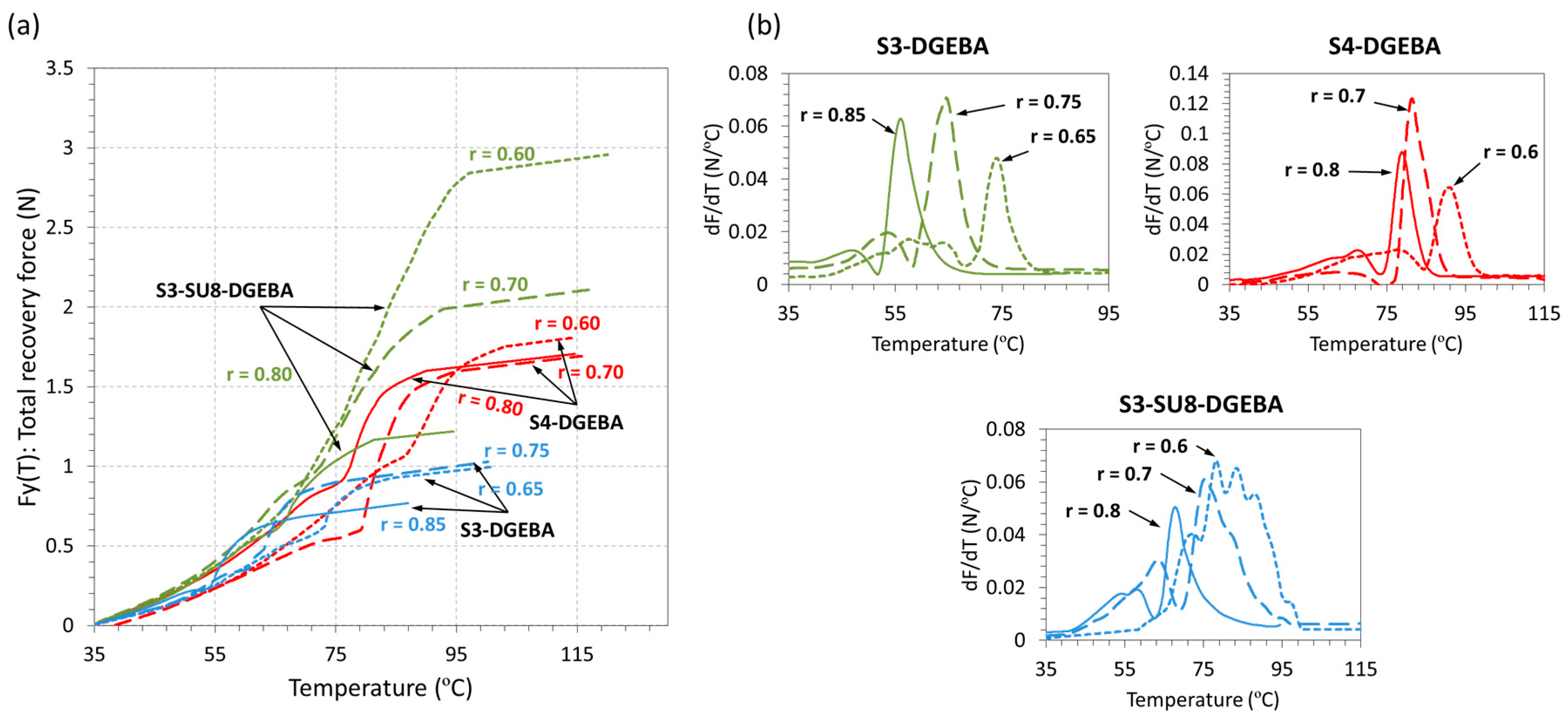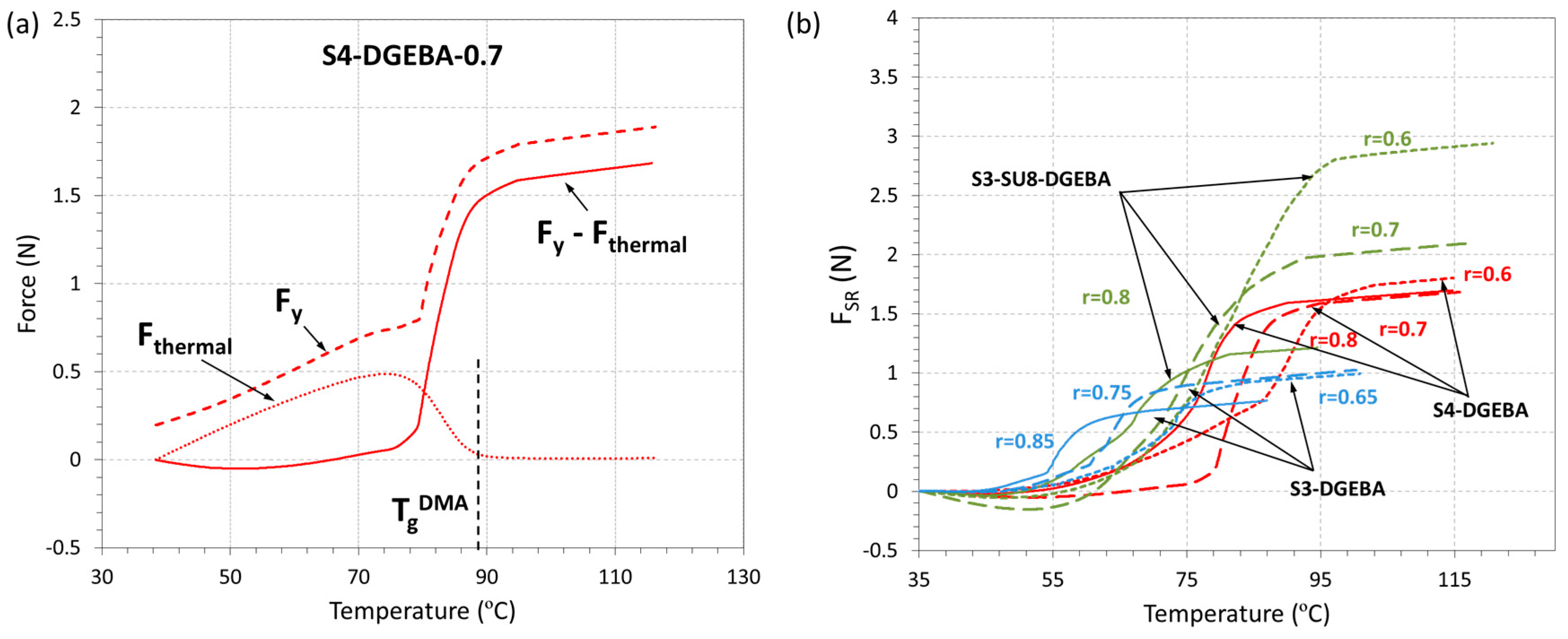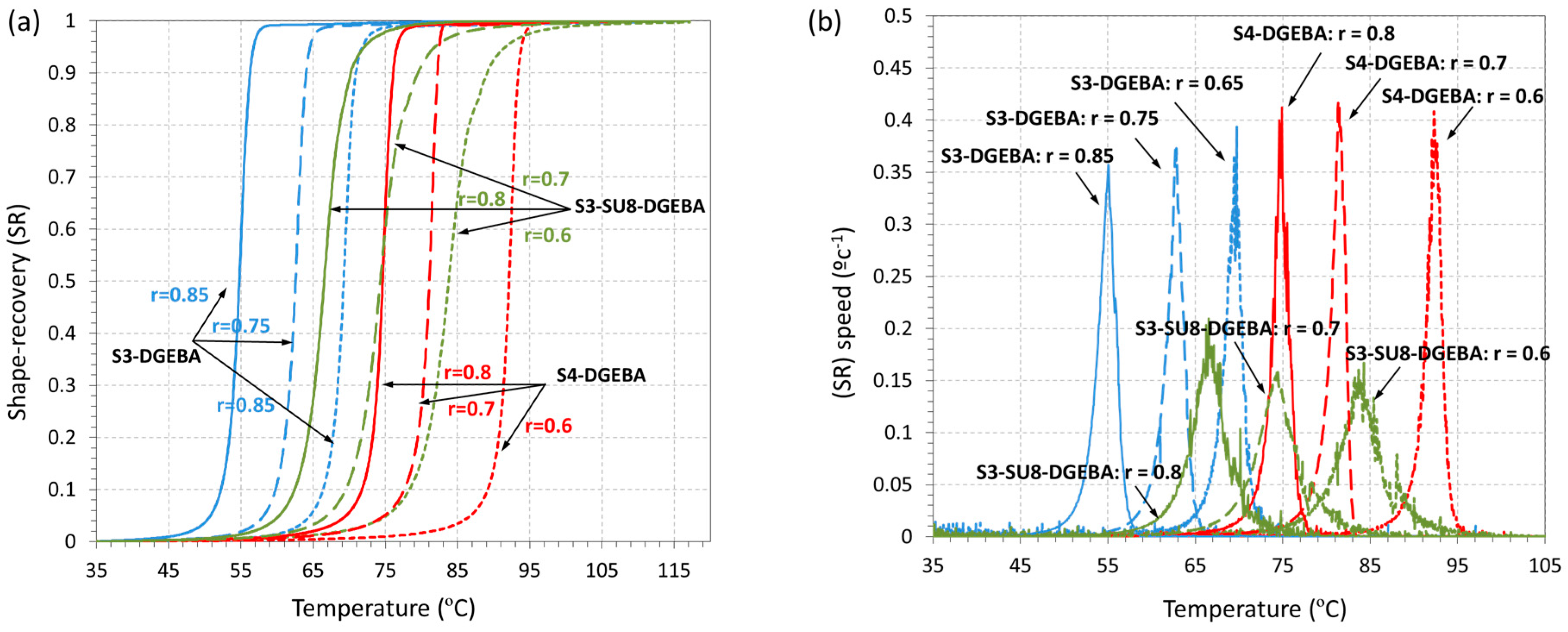 - Belmonte, A.; Fernández-Francos, X.; De la Flor, S. New understanding of the shape-memory response in thiol-epoxy click systems: Towards controlling the recovery process. J. Mater. Sci. 2017, 52, 1625–1638. [Google Scholar] [CrossRef]