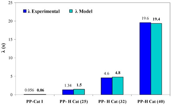 - With increasing the molar ratio of II/I, all the peaks exhibited an individual relaxation peak which tends towards longer times as the molar ratio of catalyst (II) is increased. As a result, PP-H Cat (40) exhibits the longest relaxation time among the samples.