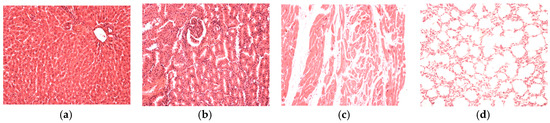 On the last day of both of the experiments, the blood was collected and with the automated haematological analyser (SySmex XT 1800 from SYSMEX Europe GmbH, Norderstedt, Germany) the following parameters were determined: white blood cell count and leukocyte formula, red blood cell count, platelet count, packed cell volume and haemoglobin levels. With the automated biochemical analyser RX Imola (from RANDOX laboratories, Crumlin, UK) the following parameters were determined in serum: aspartate aminotransferase, alanine aminotransferase, urea, creatinine, uric acid, total cholesterol and total proteins. After the experiments all animals were euthanized. After animal euthanasia, tissue fragments were collected for histological examination. The organ fragments were fixed in 10% formalin solution and prepared for light microscopic examination and stained with hematoxylin–eosin (HE).
