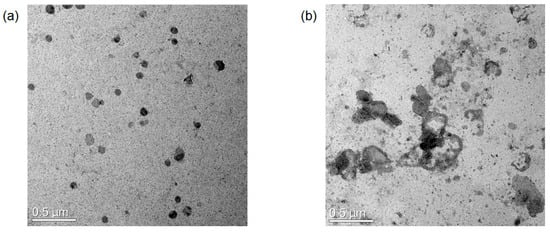 TEM images of the antibody-conjugated PDA nano-vesicles. (a) Without virus antigen; (b) With virus antigen.