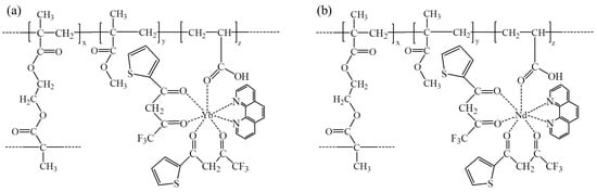 Schematic diagrams of (a) PMMA–Yb and (b) PMMA–Nd copolymers.