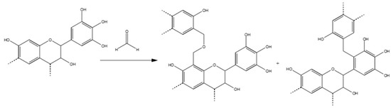 - Rossouw, D.D.T.; Pizzi, A.; McGillivray, G. The kinetics of condensation of phenolic polyflavonoid tannins with aldehydes. J. Polym. Sci. Polym. Chem. Ed. 1980, 18, 3323–3343. [Google Scholar] [CrossRef]