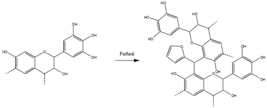 - Foo, L.Y.; Hemingway, R.W. Condensed tannins: Reactions of model compounds with furfuryl alcohol and furfuraldehyde. J. Wood Chem. Technol. 1985, 5, 135–158. [Google Scholar] [CrossRef]