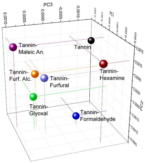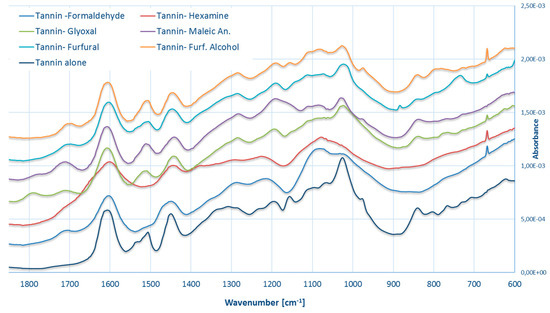 - Tondi, G.; Petutschnigg, A. Middle infrared (ATR FT-MIR) characterization of industrial tannin extracts. Ind. Crop. Prod. 2015, 65, 422–428. [Google Scholar] [CrossRef]