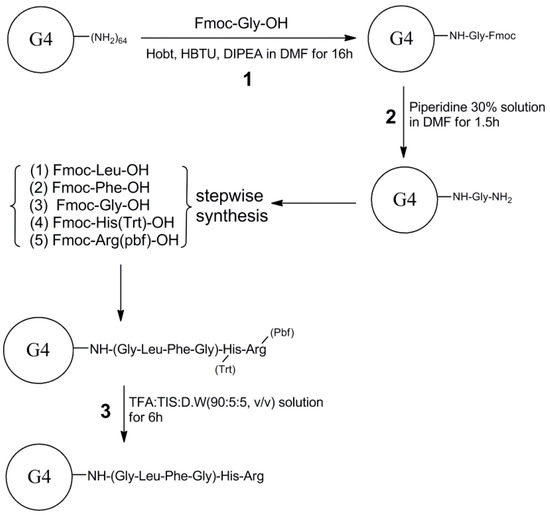 2.2. Synthesis of PAMAM G4-GLFG-H-R