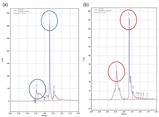 HPLC peaks of (a) methylglyoxal (MGO) and (b) chestnut honey (CH).