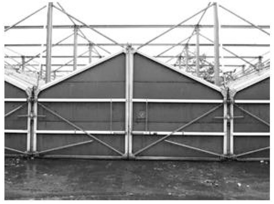 The system consists of municipal solid waste, sewage sludge and organic waste. Two types of specimens were used for the composting tests, one in the form of dumbbell-shaped samples, and the second as a pieces of sachets with the dimensions: 4 cm × 3.5 cm. Both types of samples were placed in a testing cage as previously described in [21]. The cages were then located to a roofed tunnel (one module of the Biodegma system; Figure 1) at a depth of 0.5 m below the compost surface. The test of the industrial composting process was carried out in triplicate within 6 weeks, at an average temperature of 61 °C (±5 °C).