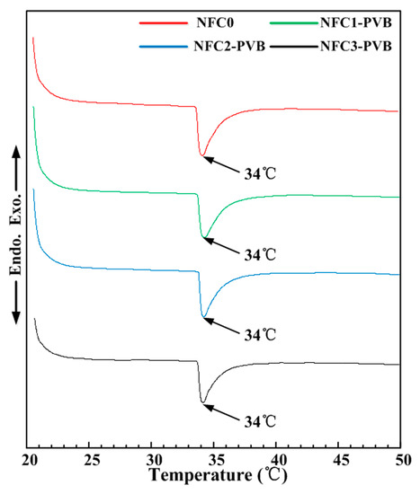 DSC profiles of PVB-containing hydrogels with various NFC contents.