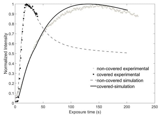 T = 20 ± 1 °C, respectively). When part of the water had evaporated (drying time 16 h), the thickness of the “solid” film decreased to 140 ± 5 μm. At this time, the plate was then ready for exposure. The thickness of the solid film was measured using an ultrasonic pulse-echo gauge (PositTector 200, Clemco, Skanderborg, Denmark) after exposure. To prevent any effects due to changes on the surface, we applied an index matching and cover plating system like that described in [