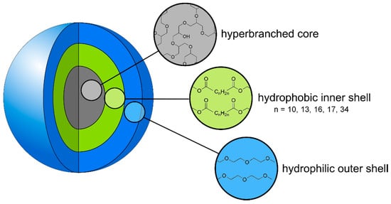 - Quadir, M.A.; Radowski, M.R.; Kratz, F.; Licha, K.; Hauff, P.; Haag, R. Dendritic multishell architectures for drug and dye transport. J. Control. Release 2008, 132, 289–294. [Google Scholar] [CrossRef] [PubMed]