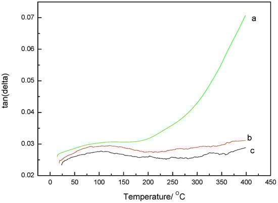 Figure 9, respectively). This behavior indicates that the polymer shifted from a glassy state to a rubbery state as the segmental motion of the polymer chains increased. While the storage modulus and the tanδ plots were relatively flat for the samples heated at elevated temperatures for long times (curves b and c), the curve c, in particular, showed a higher storage modulus, thereby revealing the presence of a stable cross-linked network hindering the segmental motion of the polymers. This enhancement in the dynamic mechanical properties of the phthalonitrile polymer was attributed to advances in the cross-linking of the thermoset upon elevated temperatures for long times.