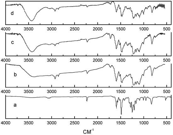 Figure 13, curves b–d respectively) were ascribed to triazine rings. Moreover, the carbonyl bands at 1713, 1725, and 1717 cm