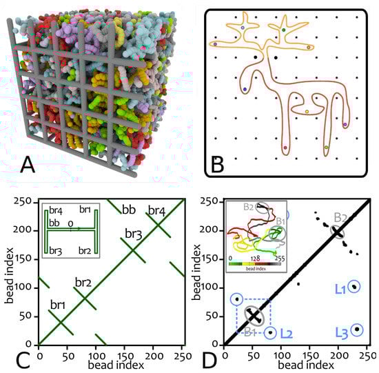 - Grosberg, A.Y.; Rabin, Y.; Havlin, S.; Neer, A. Crumpled globule model of the three-dimensional structure of DNA. Europhys. Lett. 1993, 23, 373–378. [Google Scholar] [CrossRef]